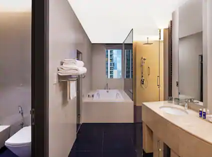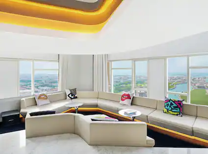 ההילטון השני במעלתו נושא את השם הילטון V , מלון יוקרתי יותר, נינוח ומעודן ,ובו מועדון למופעים בעלי אופי מיוחדים LA PERLE DXB .כמובן ללא הפרעת מנוחת האורחים,